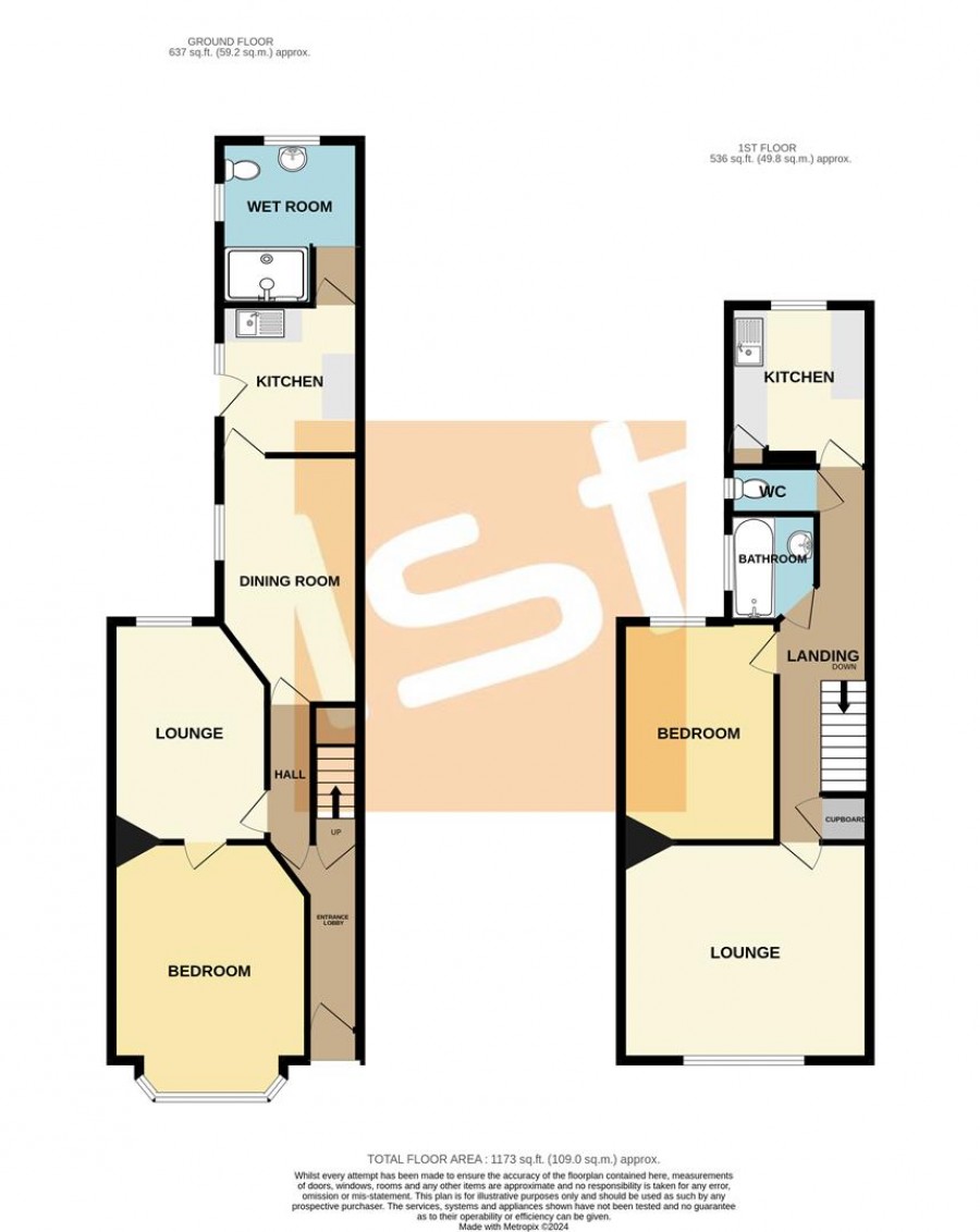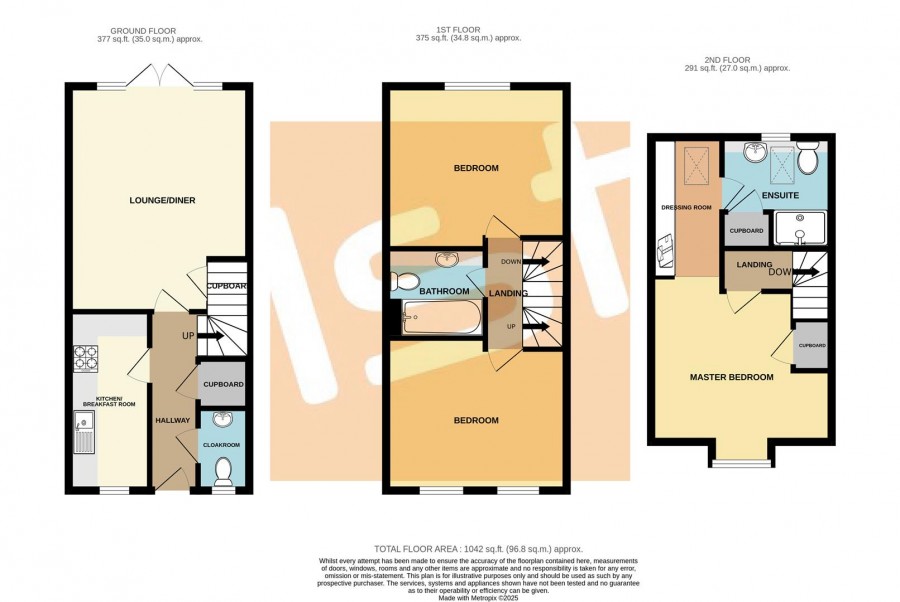 Suite comprising wall mounted wash hand basin, low level W.C., enclosed shower cubicle, radiator, fully tiled walls and flooring, obscure double glazed window to side...