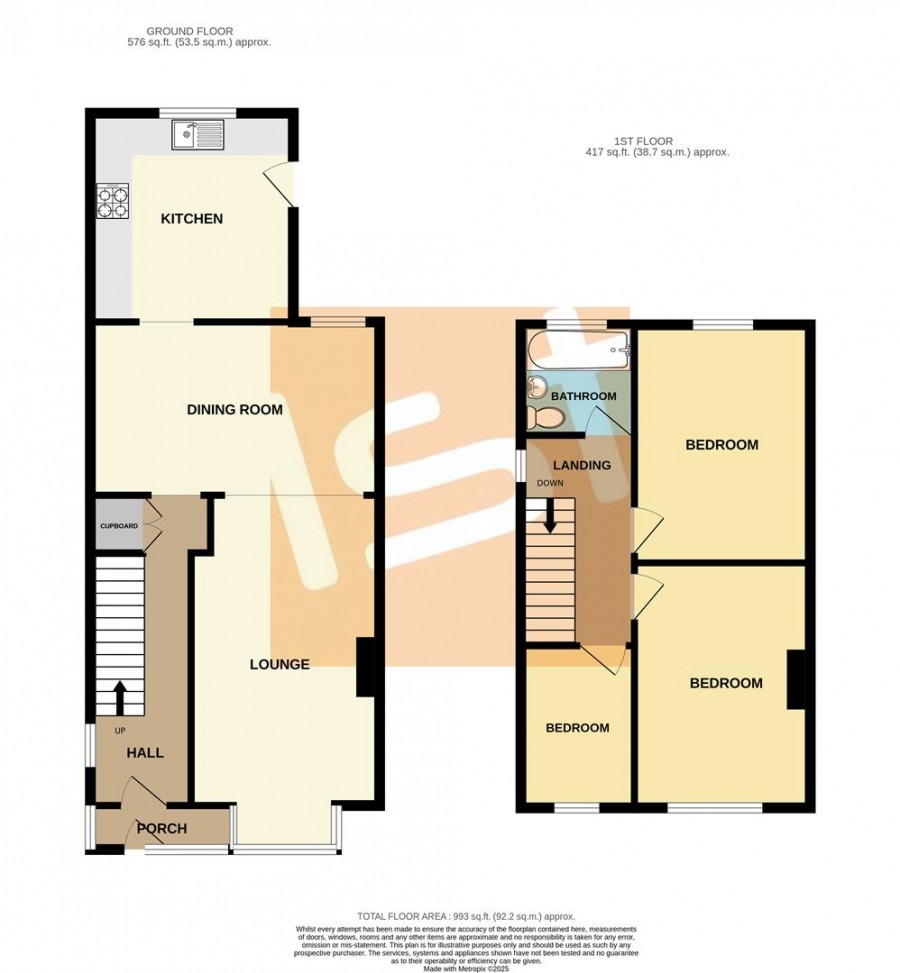 Staircase to first floor with understairs storage cupboard, radiator, doors off to...
